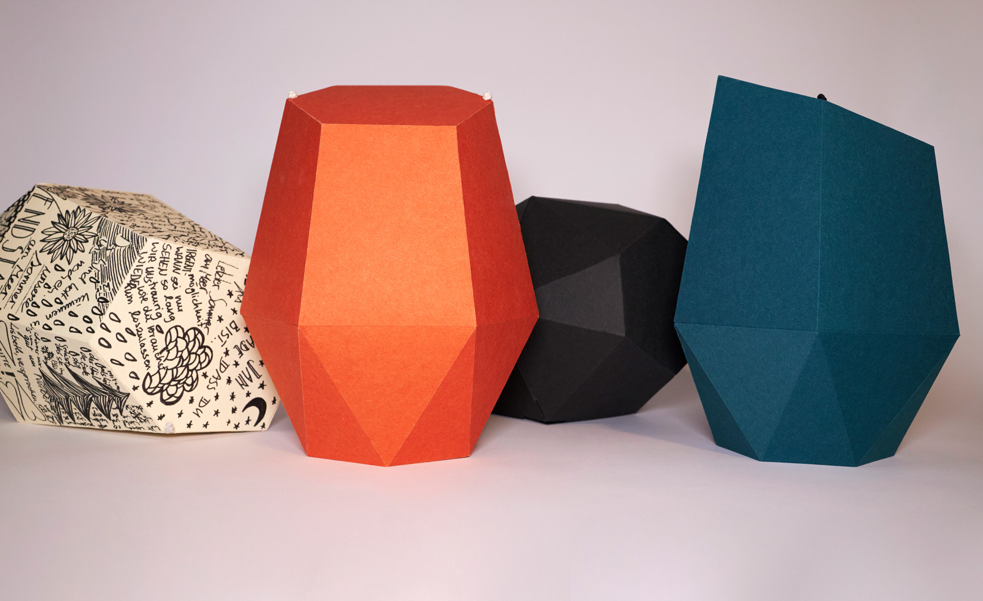Recycling-Kartonage, Petrol, Creme, Orange, Schwarz